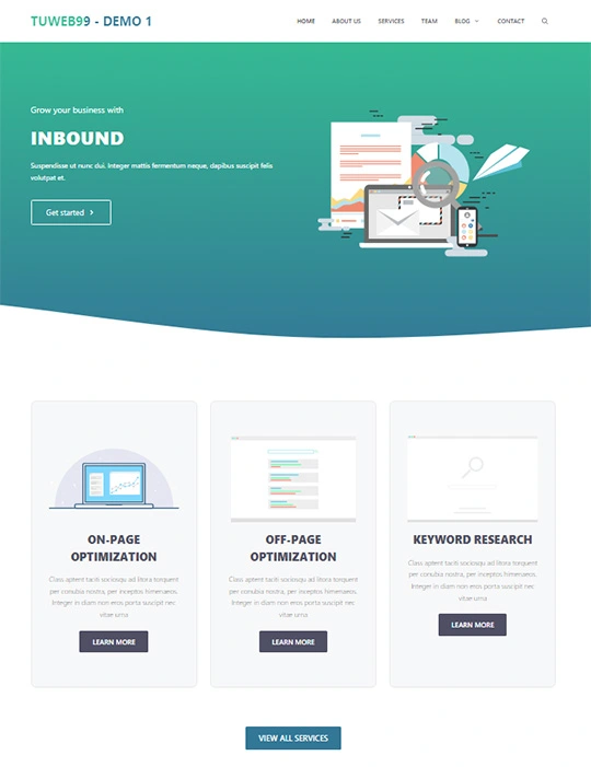 Recuerda que el producto tuweb99 es una única página (OnePage). Estas páginas de demostración están desarrolladas con múltiples páginas.